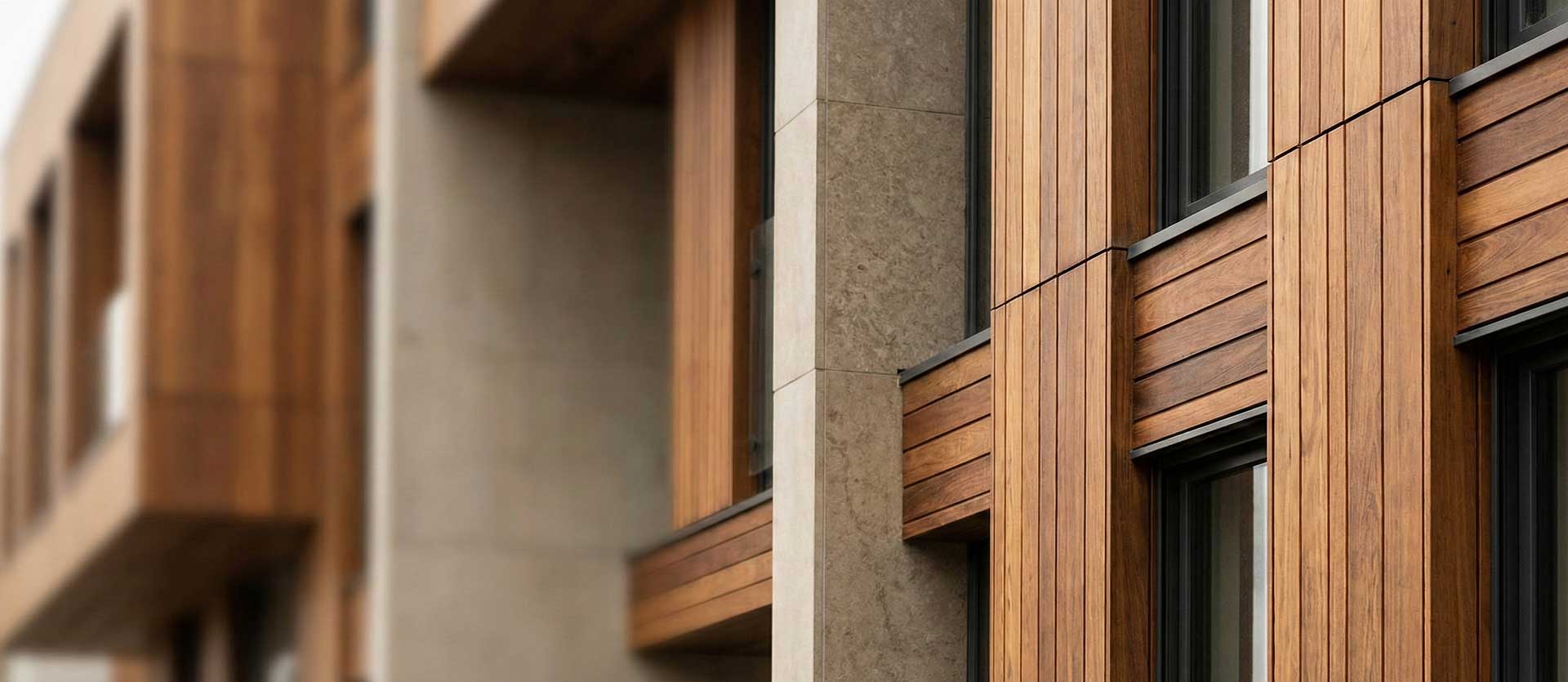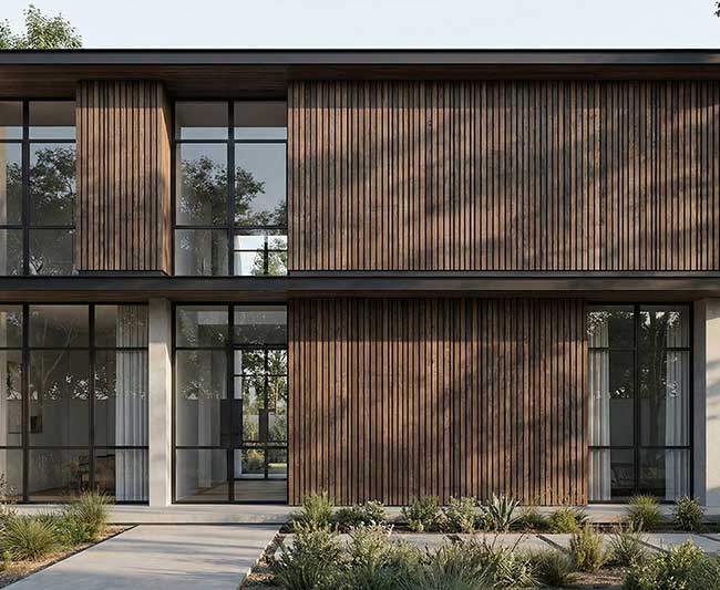 ترکیب چوب ترمووود با معماری مدرن برای خلق نماهایی بادوام، گرم و هماهنگ با محیط اطراف.
