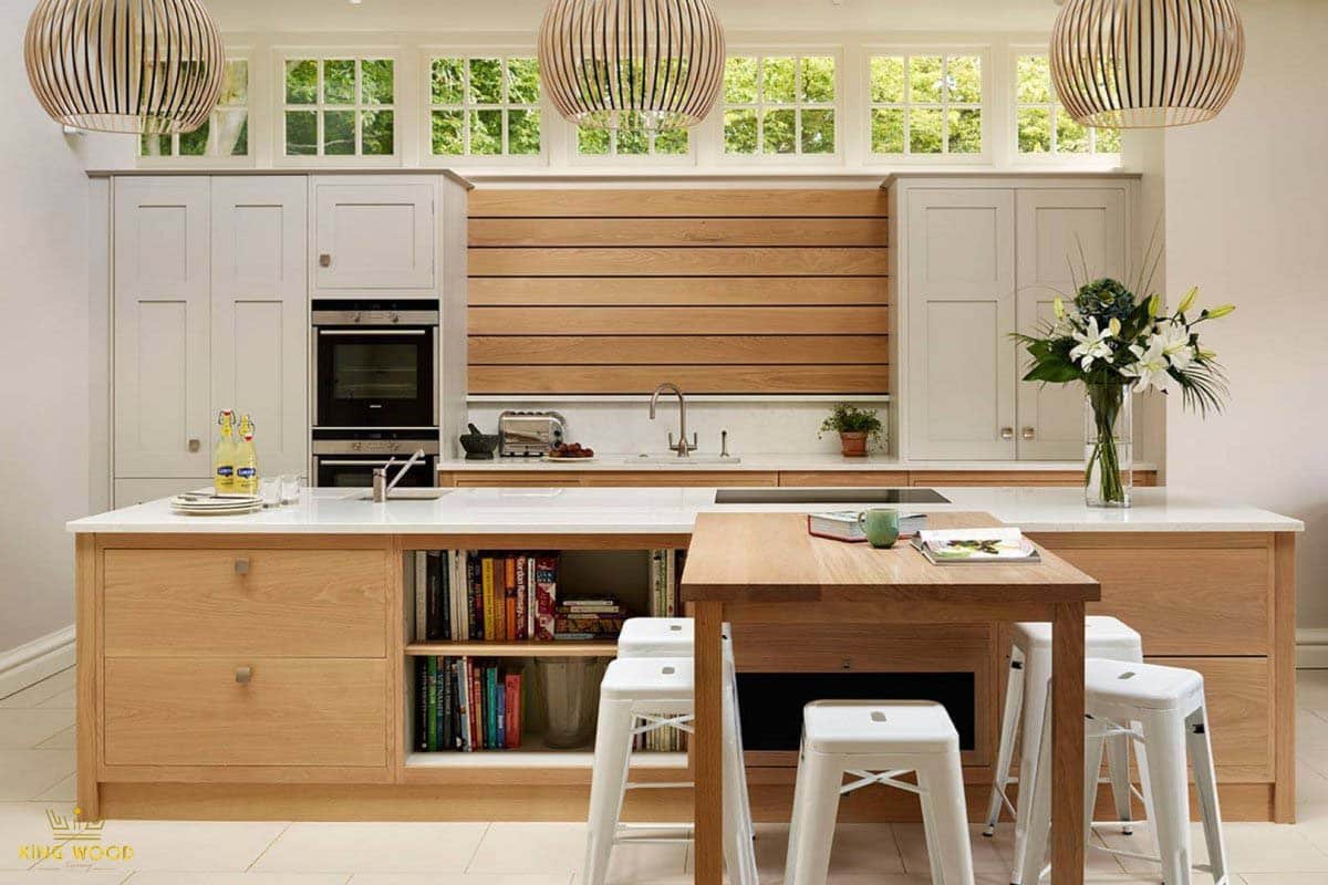 از طرفی چوب مادهای است که به سهولت تمیز می شود و لک و اثر انگشت را به راحتی نشان نمی دهد. تنها با یک دستمال مرطوب، میتوان آن را تمیز کرد. این ویژگی بین کابینتی با چوب را به انتخابی ایدهآل برای افرادی با وقت کم تبدیل می کند. همچنین قابلیت اجرای انواع طرحها با چوب، انعطافپذیری آن را به رخ میکشد. ضمن اینکه بسته به نوع چوب انتخاب شده، میتواند مقرون به صرفه تر از متریالهایی مانند گرانیت یا مرمر باشد. بنابراین اگر به دنبال ایجاد فضایی گرم و طبیعی در آشپزخانه خود، بدون بر هم زدن توازن بودجه هستید، چوب انتخابی ایدهآل است.