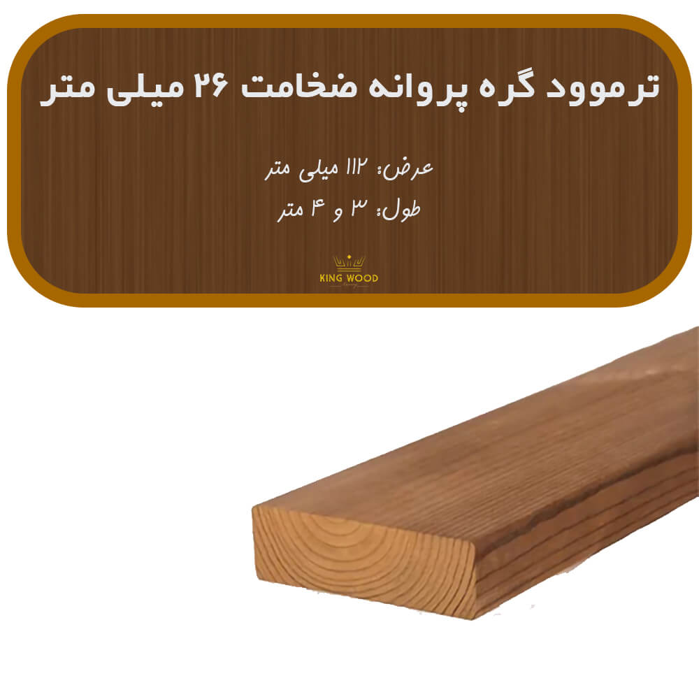 1,120,000 تومانهر مترمربع مشاهده و توضیحات محصول سفارش تلفنیترمووود گره پروانه ضخامت 26 و عرض 112 میلیمتر